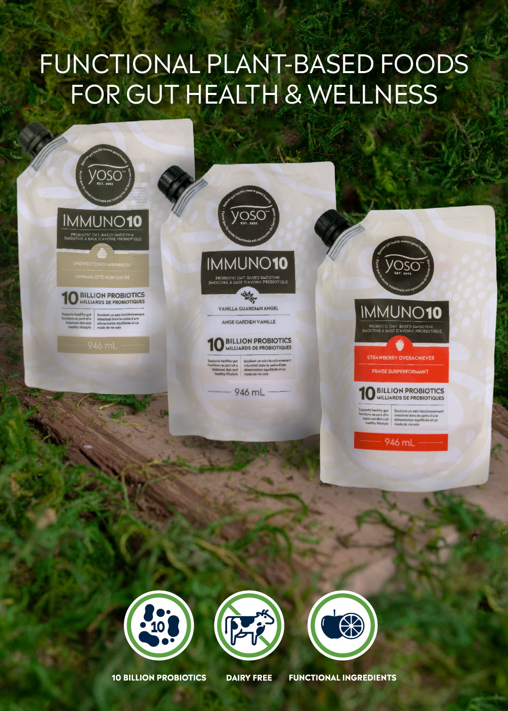 The first and only Plant-Based Smoothie with 10 Billion Probiotics per serving. That's a lot of probiotics! Offered in three delicious herb-based flavours with functional ingredients to help improve gut health, immunity & more!