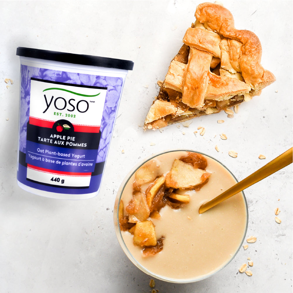 YOSO Pie Flavoured Yogurt was the first oat yogurt line with dessert flavours in Canada. Why not combine oat yogurt and dedacent desserts, a perefect two in one! YOSO Oat Yogurt in dessert pie flavours included Apple Pie, Chocolate Banana Pie and Key Lime Pie ... Yumm!